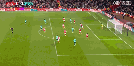 第90分钟,扳平比分,阿罗科达雷头槌破门,狼队1-1